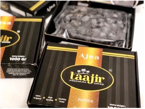 Kurma Ajwa dengan size JUMBO, varian paling eksklusif dari Taajir. Kurma terbesar, daging paling tebal, dan rasa terbaik. Sangat cocok untuk hantaran spesial.