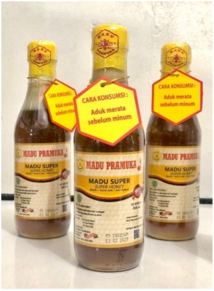 MADU PRAMUKA SUPER. Kombinasi madu, pollen (tepung sari), dan royal jelly. Sangat lengkap untuk vitalitas pria/wanita.